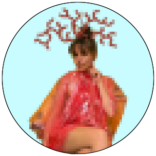 Algorithm is being lifted up by an “invisible” actor in a black costume. Algorithm is too chique and proud to fight back and just hangs there, talks and talks with his arms looking at the audience with a focussed and serious face.