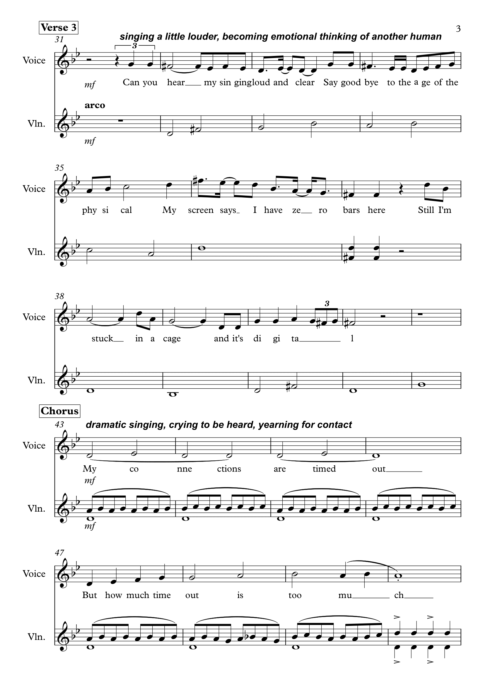 When this songs finishes, we hear a strange sound, it is The Voice of The Internet. The Human listens, tries to find out where this voice is coming from, thinking maybe she is going crazy.